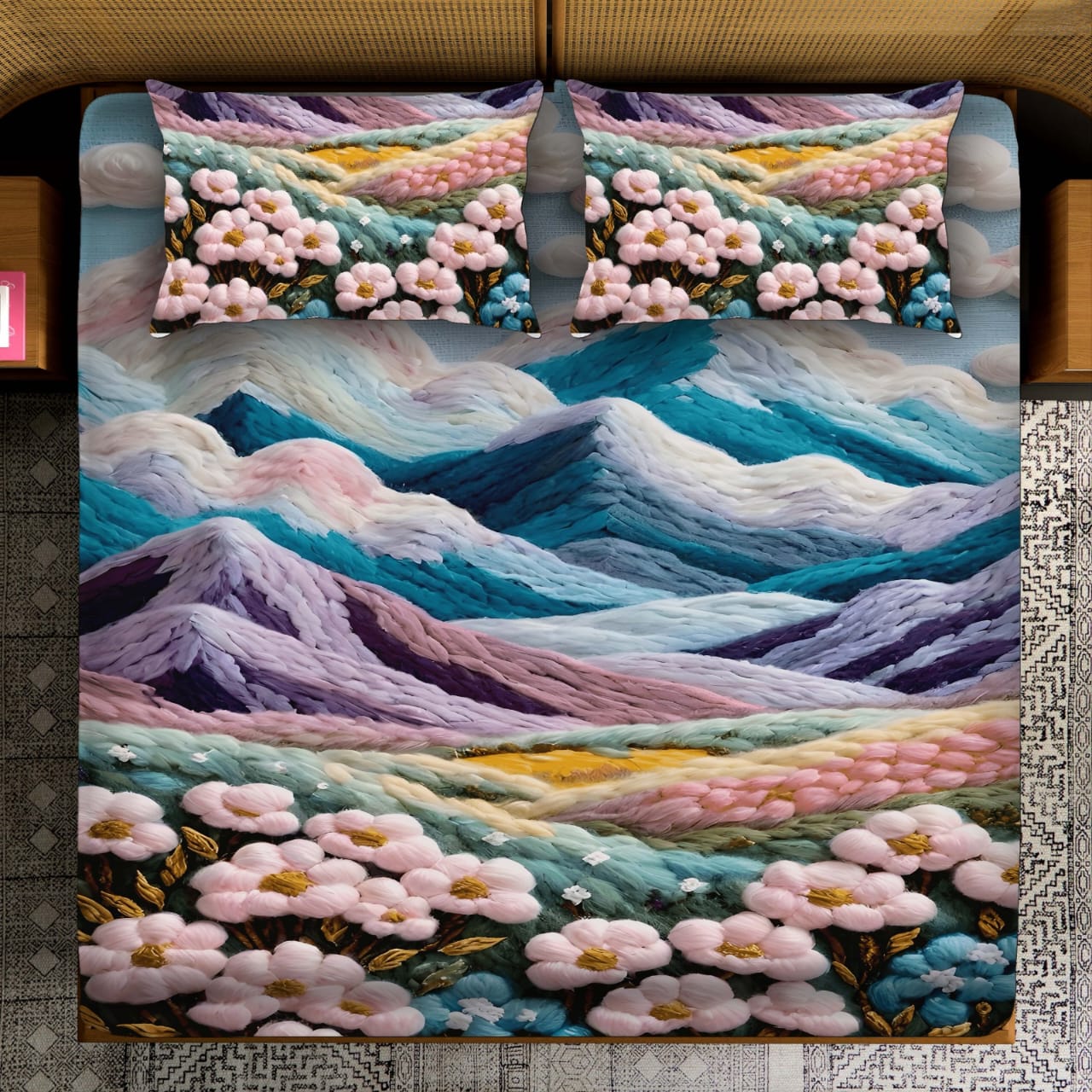 Stylish printed bedsheet with cute bunny artwork, ideal for kids and gifting